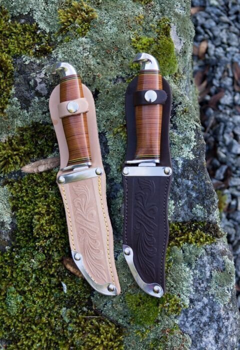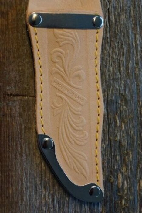 Tuppi on ympärineulottu, se tehdään luonnon vaaleasta, värjäämättömästä kotimaisesta kasvisparkkinahasta. Tupen suuaukossa ja kärjessä on metallivahvike. Tupen yläosassa on nepparikiinnitteinen nahkannauha, joka pitää puukon turvallisesti tupessa. Tupessa on koristeena hillitty perinteinen tupen värinen painatus, nk. vesileima.