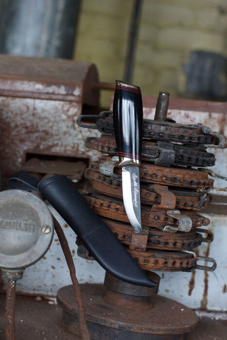 Features an 8 cm carbon steel blade, left blackened after hardening, identical to that of the Juhlavuolu.