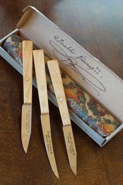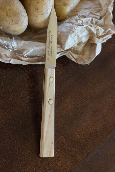 The Triplet Kitchen Knives set brings back long-time favorites after years of being out of production: the Mini Fillet knife (for root vegetables), Potato knife, and Tomato knife. This versatile selection of small knives allows you to chop, peel, and slice a wide range of vegetables and roots.