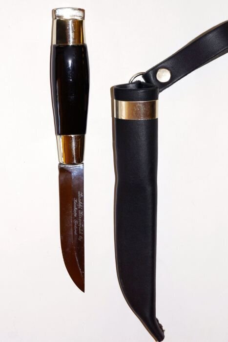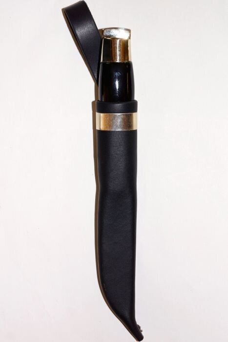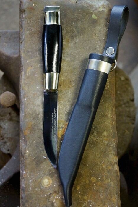 The Single Sheath Härmä Knife is versatile, serving as a traditional utility knife for hunting or hiking, but it can also be paired with the Helavyö belt for formal wear. It has also been used as a military knife in various divisions of the Finnish Defense Forces.