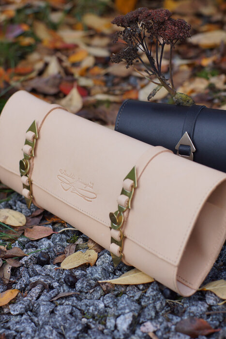 Also included is a light brown or black leather case, crafted from 1.8 mm thick vegetable-tanned bull leather. The stylish closures come from our Helavyö belts.