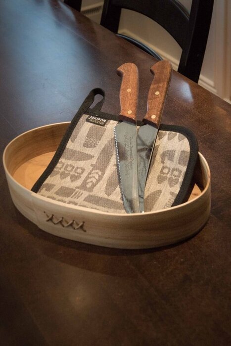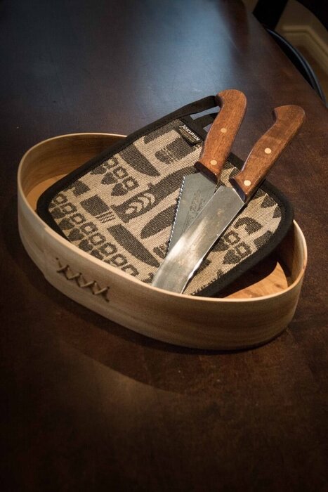Liha- ja leipäveitsi sekä patalappu myynnissä myös erikseen, lisätietoa tuotekuvauksessa.