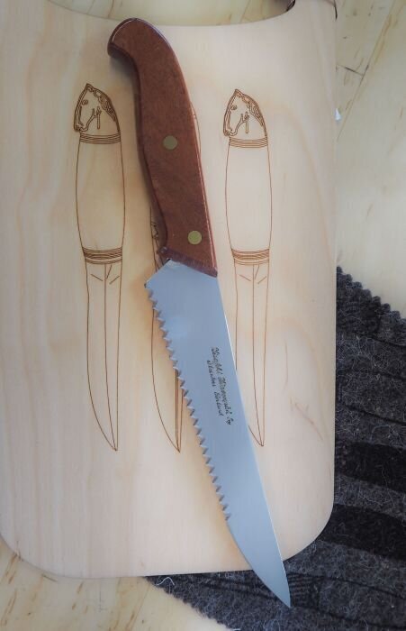 Leipäveitsen voi ostaa myös settinä yhdessä samalla kahvalla valmistetun Lihaveitsen kanssa. Setti kulkee verkkokaupassamme nimellä Kokkipojat. Keittiöveitset toimitetaan lahjapakkauksenakin toimivassa rasiassa. Terään voi tilata kaiverruksen.