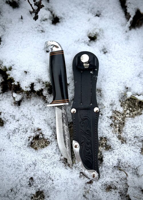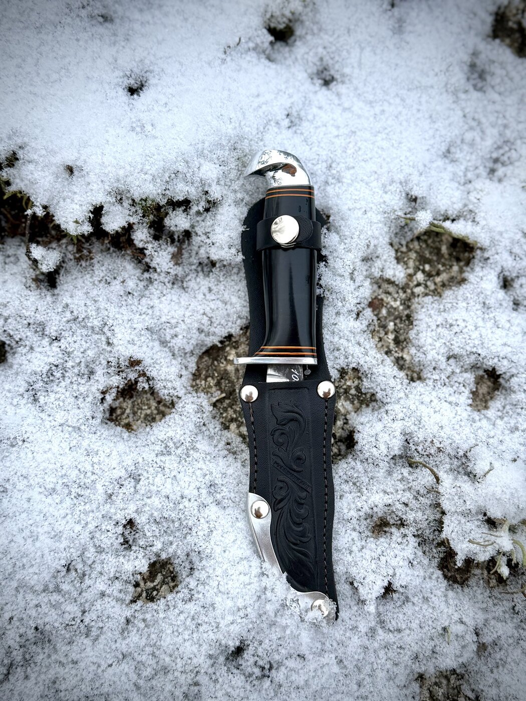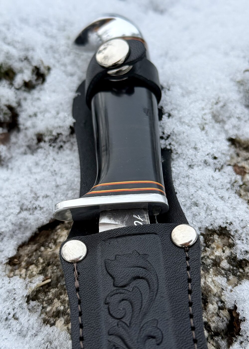 100-vuotisjuhlan kunniaksi teimme pienen erikoiserän kahdesta pienemmästä Partiopuukosta. Partiopuukkojen kahva on lakattua tuppinahkaa, kasvisparkittua nautaa. Nämä numeroidut erikoiskappaleet ovat mustia, joten kahva on mustaa tuppinahkaa. Terä on mustaa hiiliterästä. Musta väri on peräisin 800 asteisesta karkaisu-uunista, eli sitä ei ole värjätty vaan se on jätetty kiillottamatta. Myös tuppi on mustaa nahkaa. Puukon päässä oleva koukku on valettu alumiinista kuten kaikissa Partiopuukoissa. Kahvassa on koristeena Kolkkapartiossa oranssit ja Partiossa punaiset kiiltopahviraidat.
