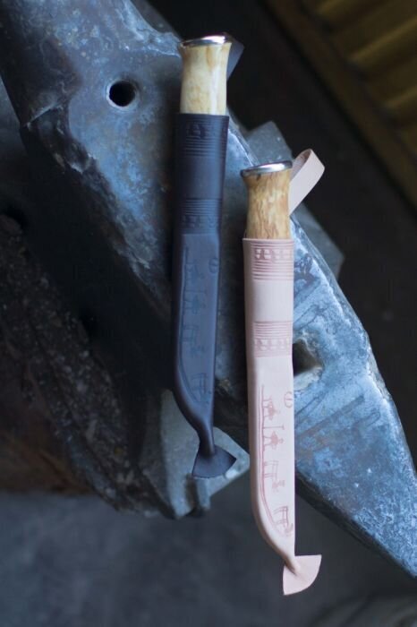Iso Upossa on kiilloitettu hiiliterästerä ja pellavaöljyllä käsitelty visakoivukahva, josta saa hyvän otteen eikä se ole liukas märkänäkään. Iso Uppoa saa vaihtoehtoisesti myös lakatulla kahvalla.