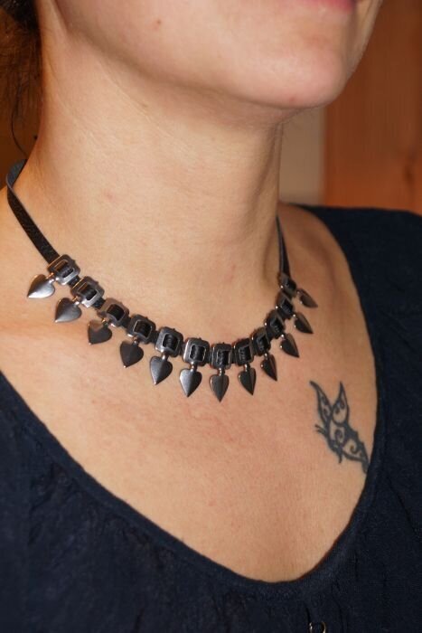 Aito Kauhavalla tehty Helakoru. Materiaalina värillinen nahka ja prässätyt teräshelat. Ei lukkoa, kiinnitetään solmimalla esim. ranteeseen tai kaulaan. Helakorussa vaihtoehtona useita värejä: Teräsheloilla nahan värinä oranssi, vaaleanpunainen, vaaleansininen, vaaleanvihreä, vihreä, valkoinen, tummanpunainen, sininen, punainen ja musta.